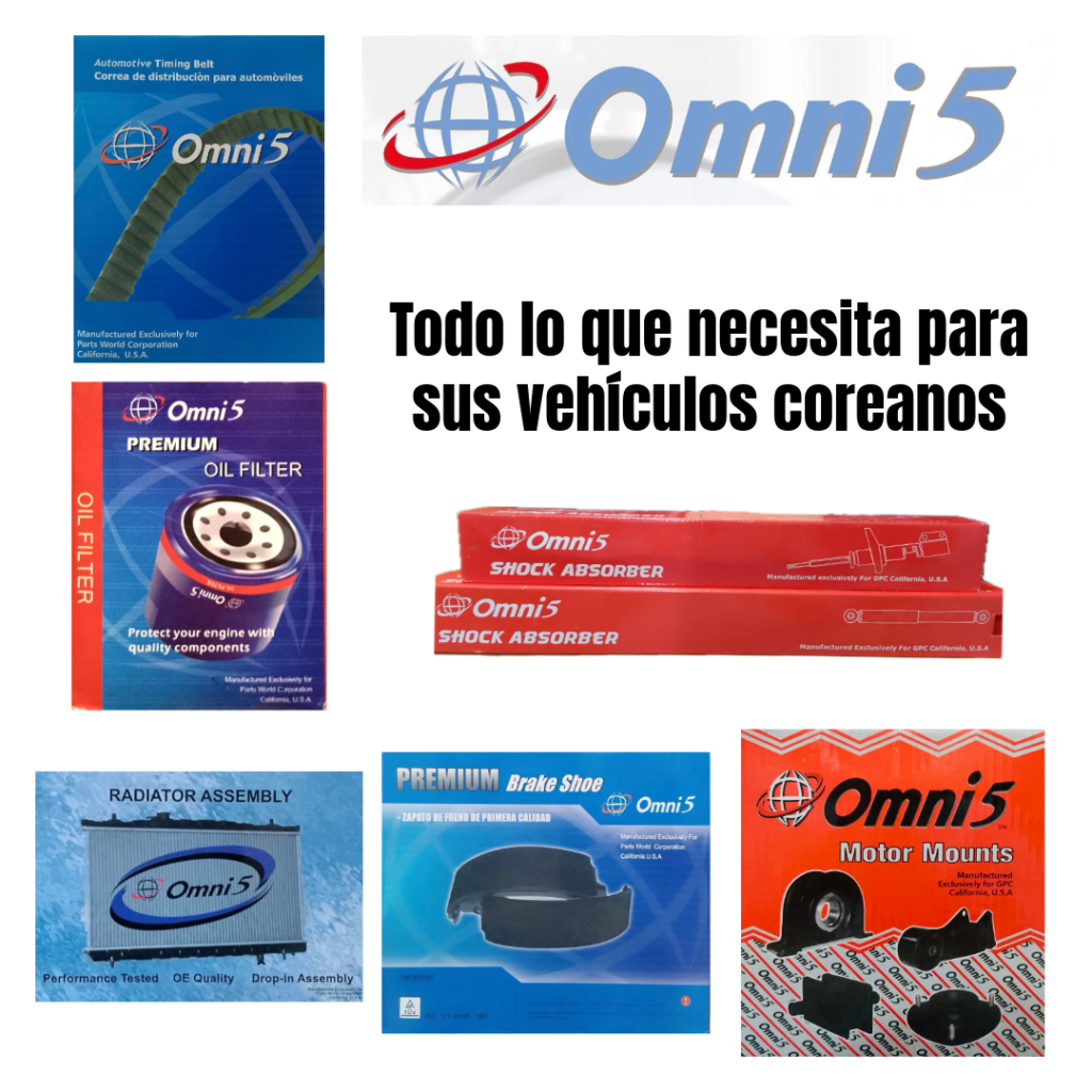En Importadora Kimsa, celebramos la excelencia con Omni 5, nuestra marca exclusiva de repuestos diseñada especialmente para vehículos coreanos. Sabemos que los autos Hyundai, Kia, SsangYong y Daewoo necesitan calidad y rendimiento superior, y Omni 5 está aquí para cumplir con esas exigencias.